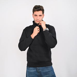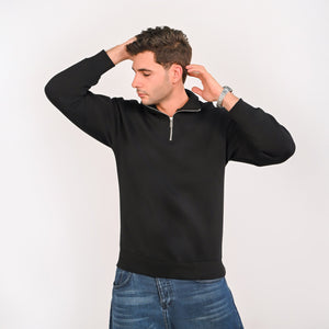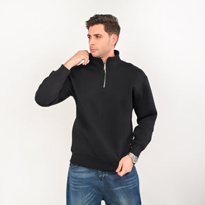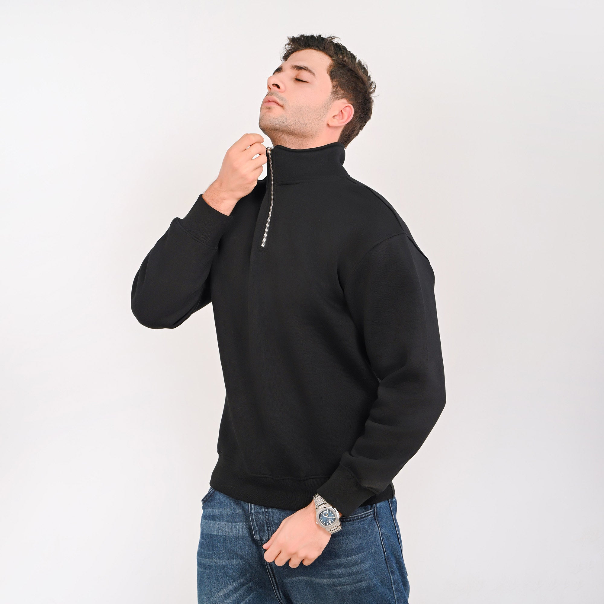 Quarter-zip sweatshirt with a high collar and smooth zipper detailing for a sleek, modern appearance
