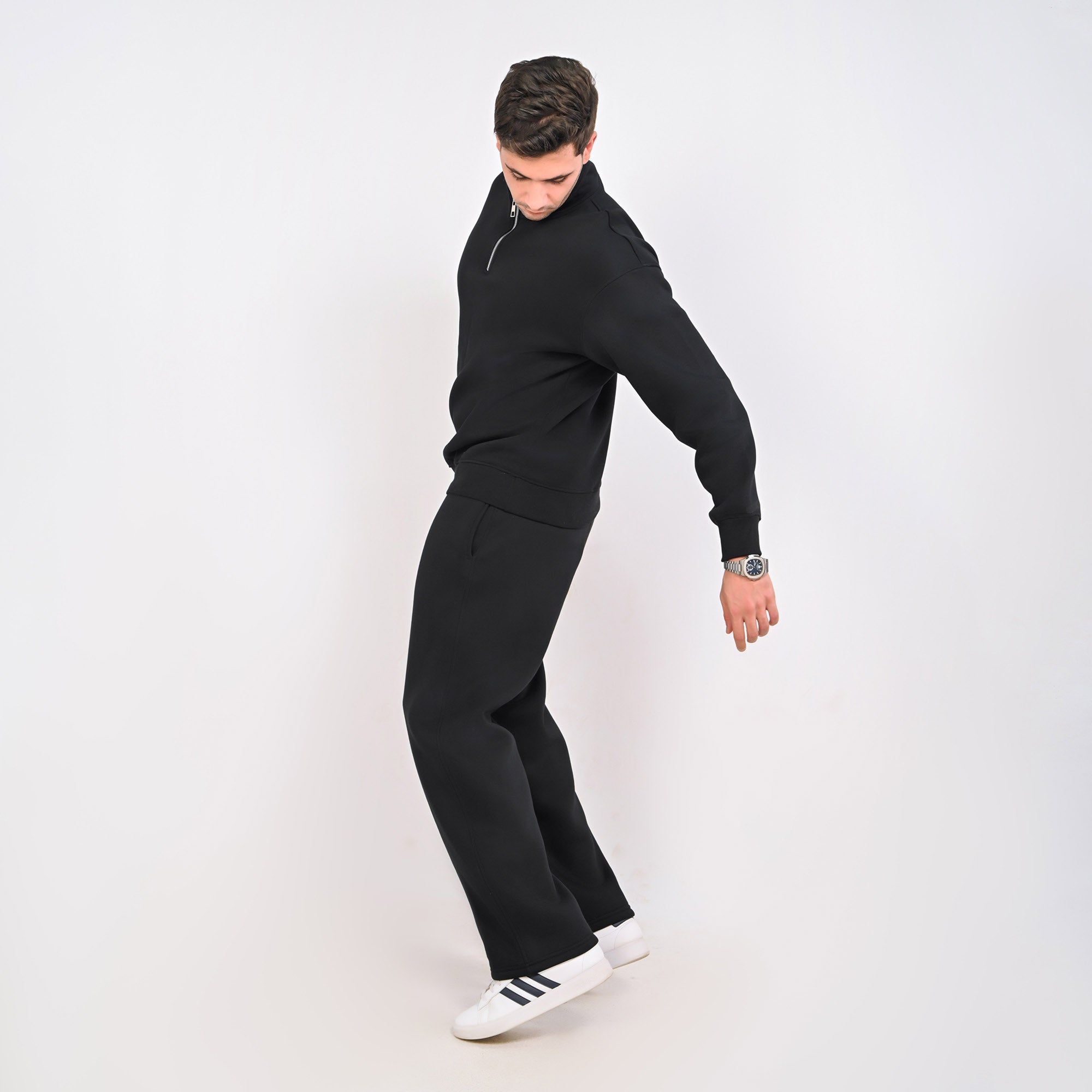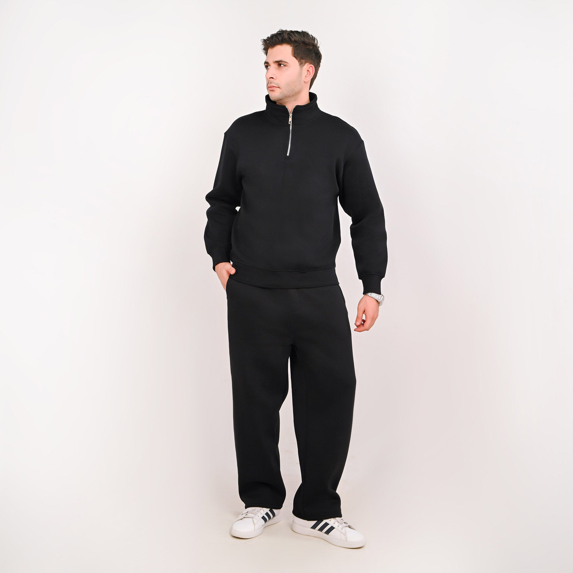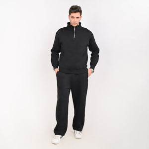 All-black coordinated set combining the Elevate Quarter-Zip Sweatshirt with the Relaxed Fit Sweatpants for a refined yet casual look
