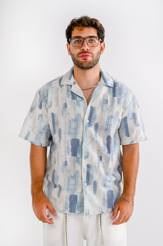 Textured Short-Sleeve Shirt - Light Blue & Navy