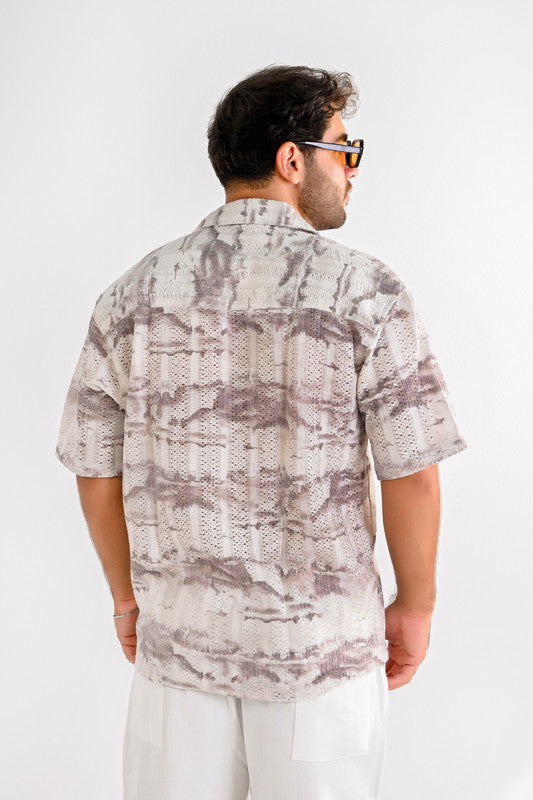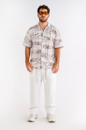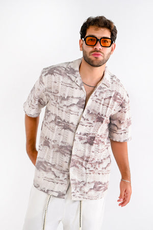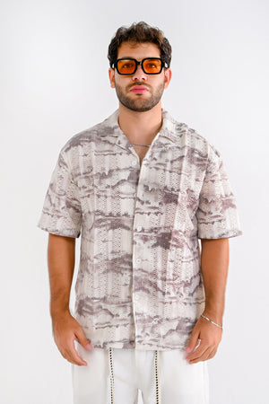 Textured Short-Sleeve Shirt - Taupe & Coffe